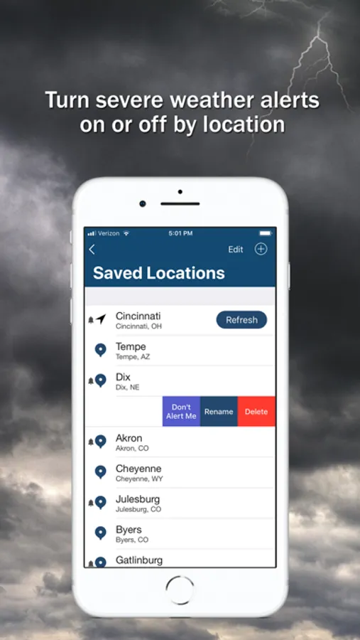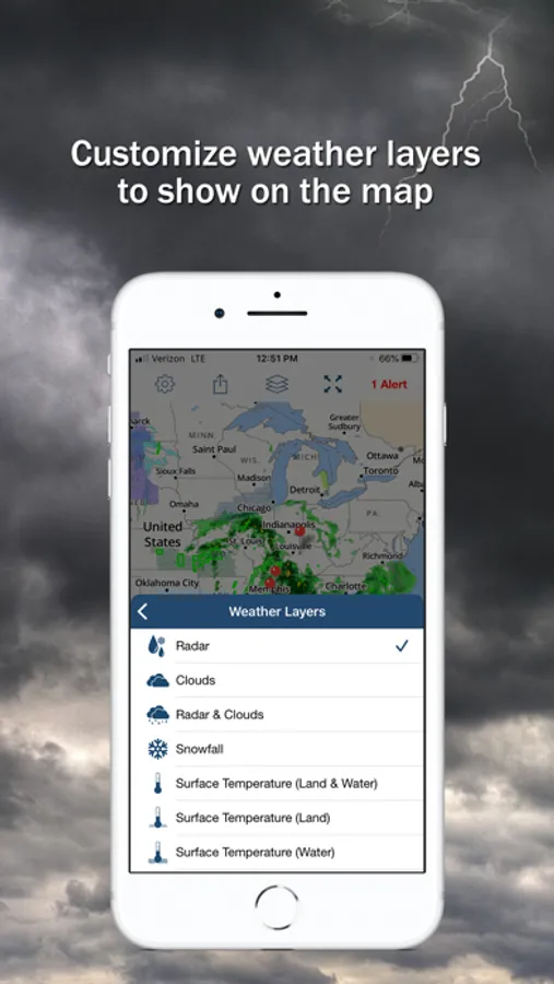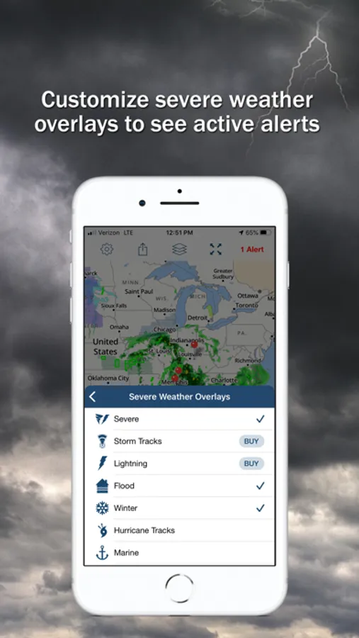 • Hi-Def radar map is your home screen so you can quickly see what's going on at your locations.