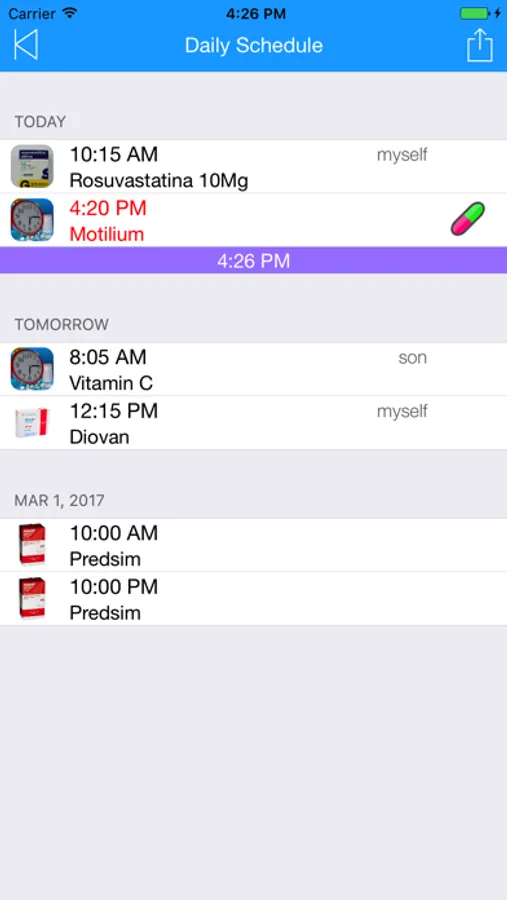 Inserting the number of days, it will make the app reminds you, always, how many days are left to the end of the treatment and how many already were taken.