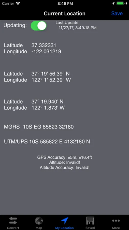 Coordinate System Converter is a fully featured app where you can convert, view, and save your geographic coordinates to/from different types of coordinate systems. It contains more functionality than any other Coordinate Converter out there!