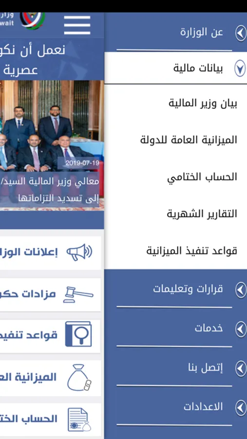 سعيا من وزارة المالية في تسهيل التعامل مع الخدمات التي تقدمها لكافة فئات المجتمع من خلال احدث التقنيات في مجال الخدمات الالكترونية والاتصالات واجهزة الهواتف الذكية والاجهزة اللوحية فقد تم اعداد تطبيق شامل تضمن العديد من الخدمات التي تنوعت حسب الفئات الموجهة لها وبما يحقق التواصل لخدمة جمهور المتعاملين مع الوزارة والباحثين عن المعلومة