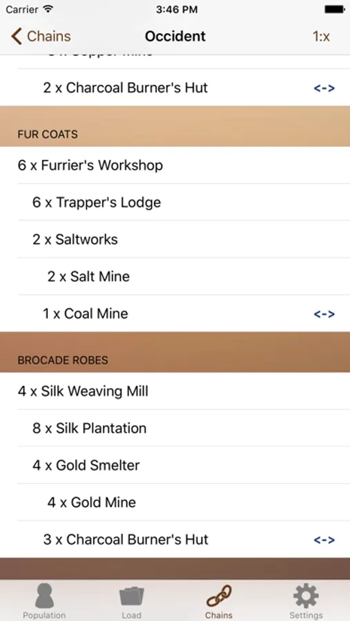 You can also view the production chains. They show the relations between the buildings, so no goods will be produced useless anymore.