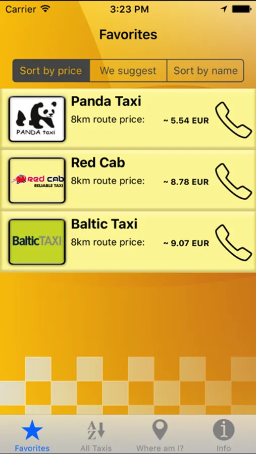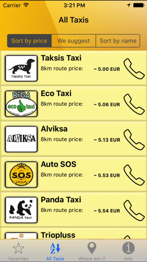 Taxi in Riga is specially for Riga, Latvia designed free iPhone application, which can be used to call for taxi and also to find the cheapest taxi company available.