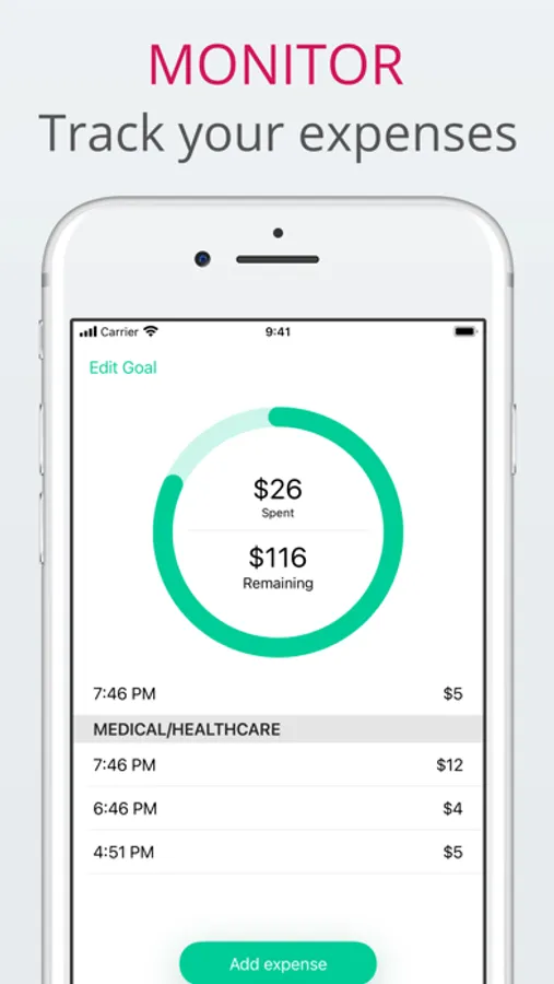 Setup an optional spending daily goal for all your day to day expenses and save cash daily.