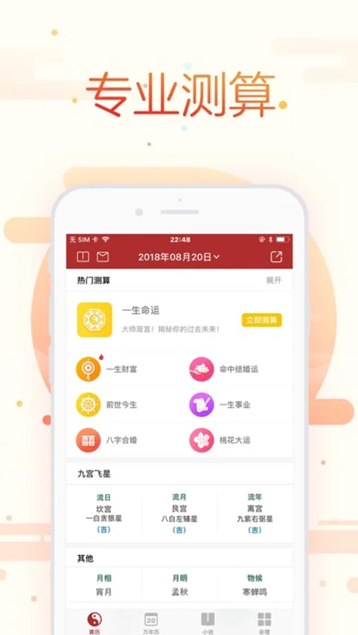 除提供常用的万年历黄历、万年历、日历、黄历、农历、阳历、节假日、日程提醒等功能之外,重点完善了传统老黄历相关的运势、宜忌、资讯等。百科全书般的黄历视图包含了老黄历书上知识点及白话文解释。除此之外,我们开发了30几款免费易用的命理工具供您使用。天下之事,尽查黄历。