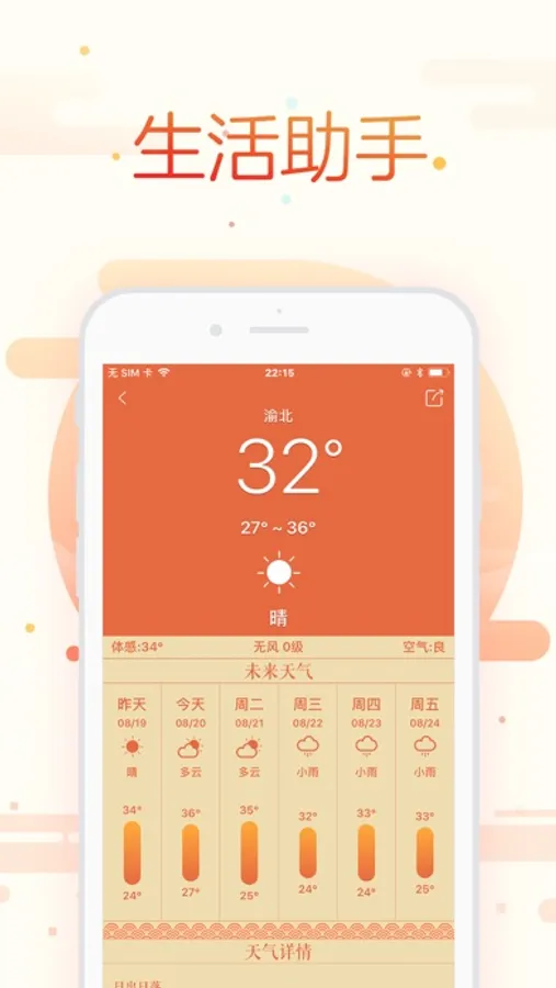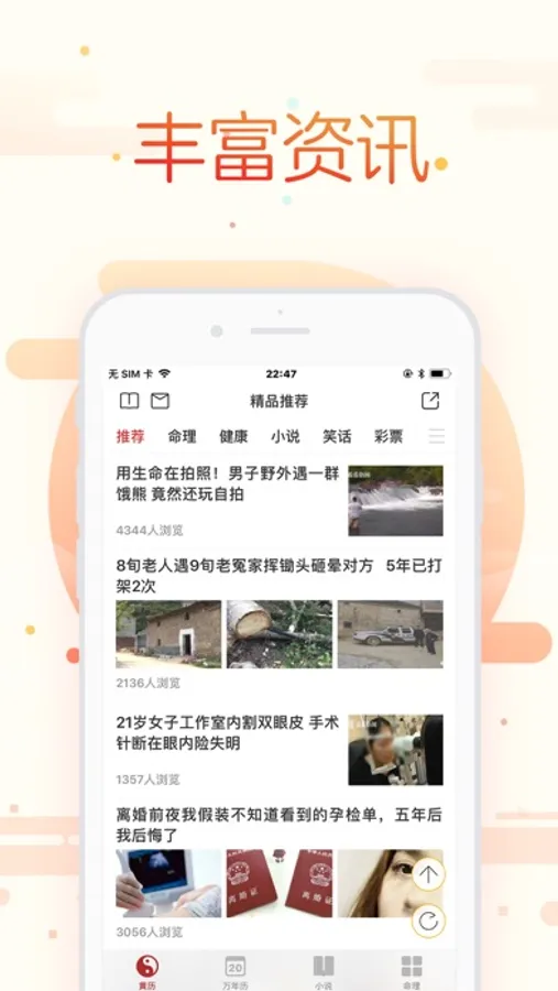 ③具备天气预报(中央气象局权威天气信息)、爆笑段子、每日心情签名、星座运势、历史上的今天、相学、易学、养生、风水、开运等资讯卡片。