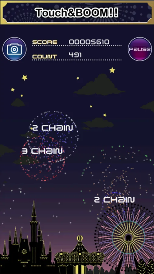 2. Many many bombs comes up one after another. So, touch them and BOOM!! Don't drop them out! Make chains to get the high score!
