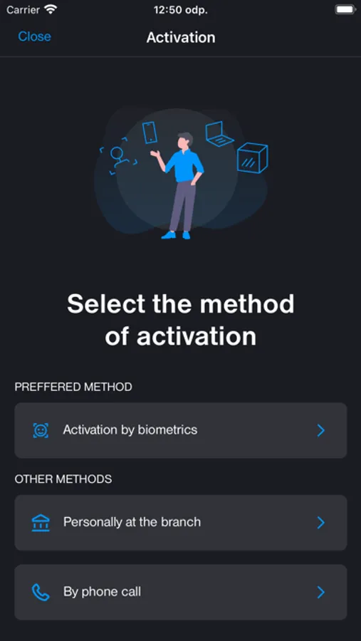 - Directly in the application - using facial biometrics. For activation, you need PID - personal identification number, a valid Slovak ID card, an SMS code sent during activation to your profile phone number, and a scan of your face.