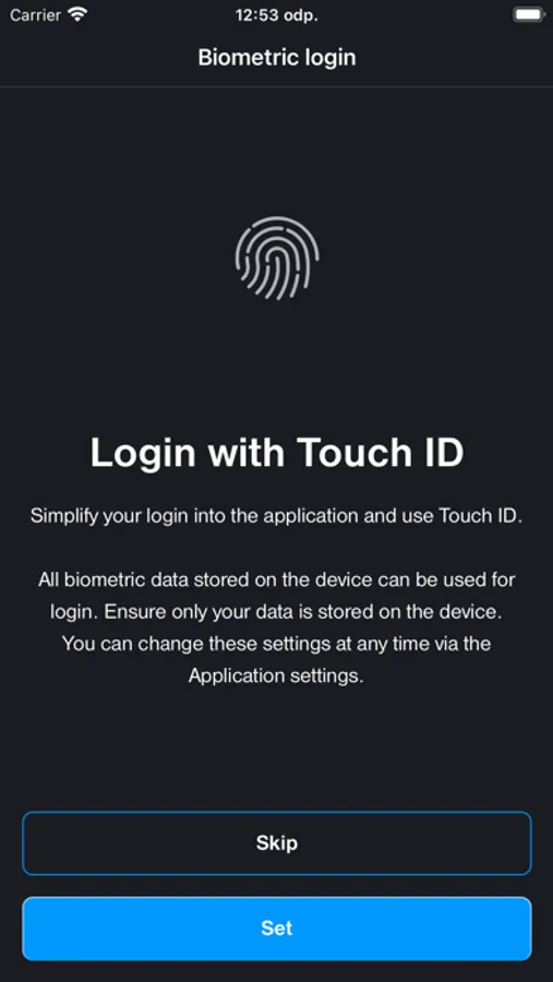 During activation, the Reader prompts the user to set a login password, the expiration time of which depends on its complexity, and to set a fingerprint for more convenient login.