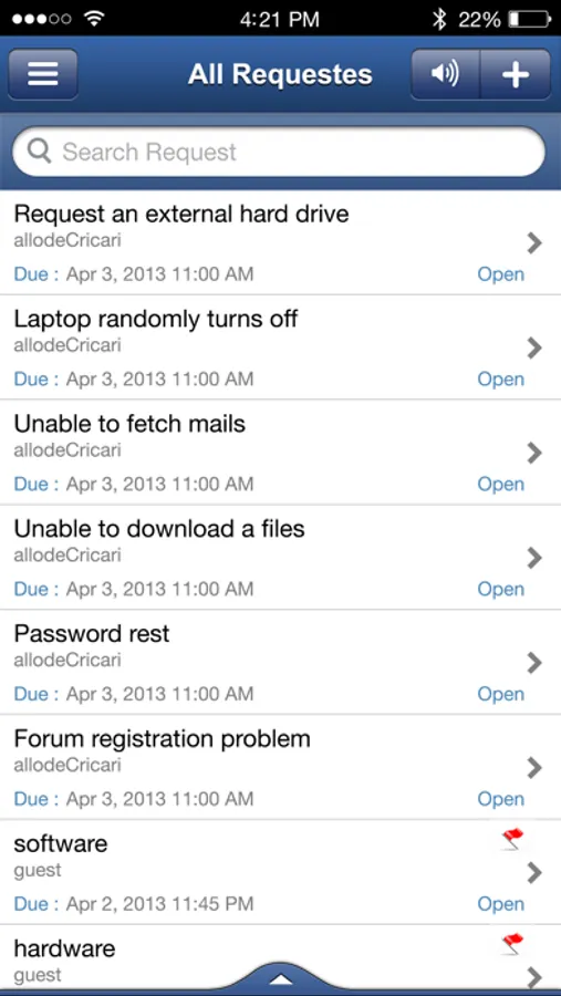* Filter requests based on criteria such as unassigned, pending, open etc.