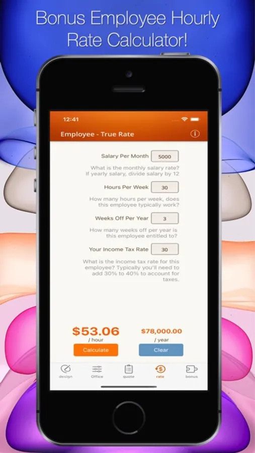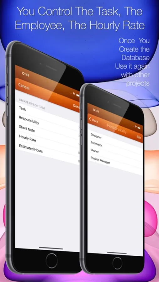 This app also allows you to input any number of unlimited tasks including employees and hourly rates for each.