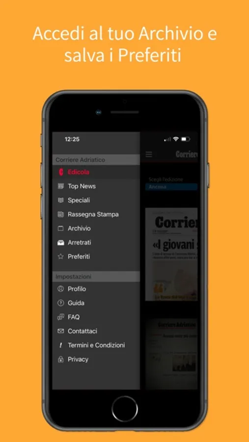 Corriere Adriatico Digital si trova nell'Edicola (Newsstand) di Apple. Per accedere all'App basta cliccare sull'icona Edicola e selezionare la prima pagina del Corriere Adriatico.