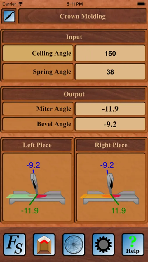 For Do-It-Yourselfers and Professionals alike, this Crown Molding app calculates the miter and bevel angles to use with a miter saw when cutting crown molding for installation.