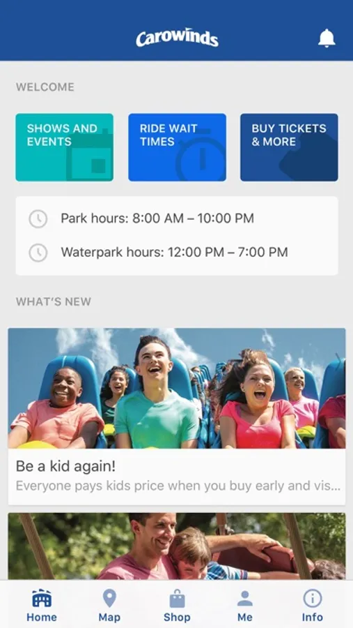 The official, Carowinds app! Get more out of every day at the park with ride wait times for your favorite rides, an interactive guide map that will help you find the fastest route to any place in the park, easy access to your FunPix photos, a complete listing of all the entertaining shows and events, including show times, so you won’t miss a minute of the action. Buy tickets or store your Season Pass on your phone and receive special offers and discounts only available to app users. Everything you need to make your day at Carowinds the best day ever!