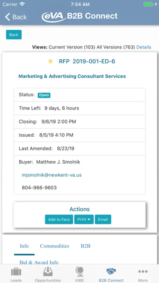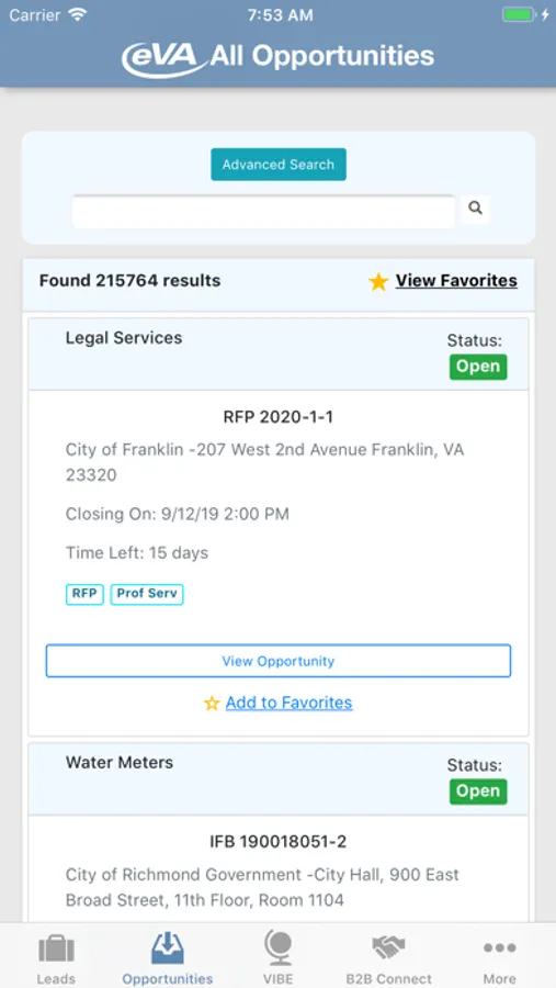 The eVA Mobile app provides users real-time access to business opportunities with Commonwealth of Virginia state agencies, universities, colleges, local governments and other Virginia public bodies.