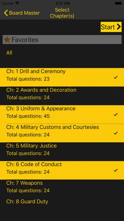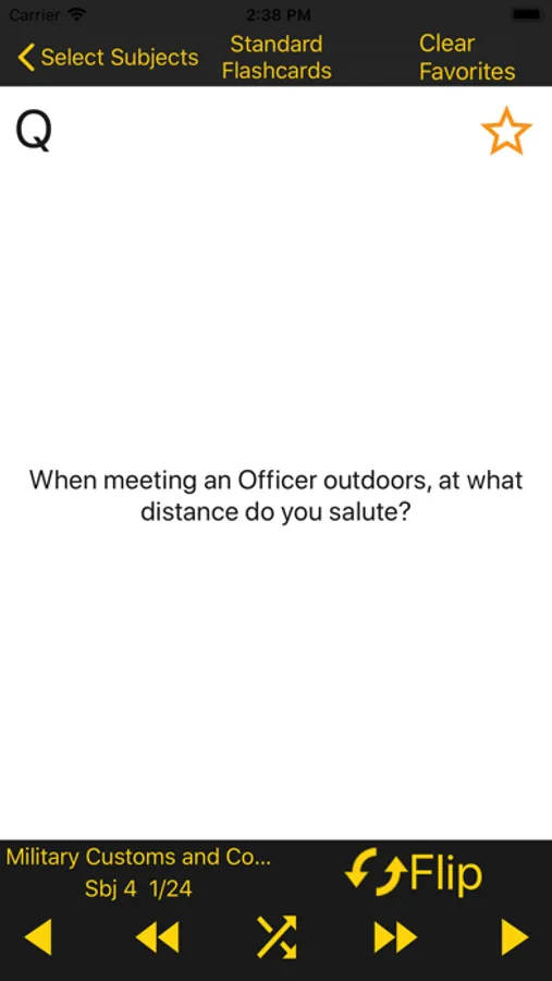 The Board Master is your take-anywhere study partner for Army promotions. With this tool, you can master the questions frequently asked during Army boards. Simply hit “Start.” You will be swiping through flashcards in no time. Swipe to a question you want to study. Flip the card over to reveal the answer. You can flag any card as a “Favorite Card” and come back to it any time.