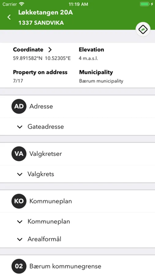 If you live in one of these forward-looking municipalities, you will also be given access to extra detailed maps for your municipality! For example, you can view zoning plans, property information and approved construction informasjon: