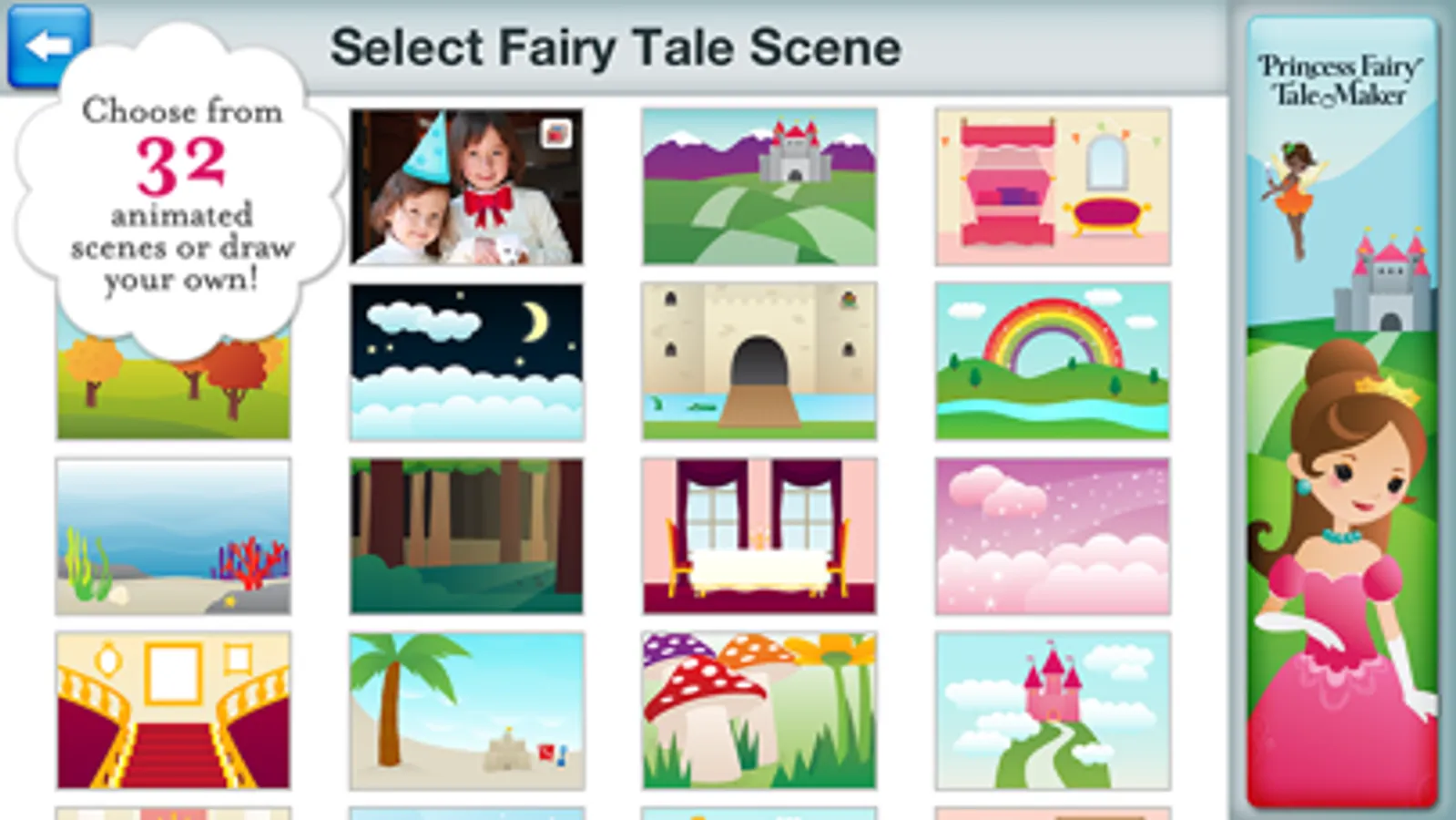 - 32 animated background scenes: fairyland, castle, forest, clouds, rainbow, deep sea, tree house and more
