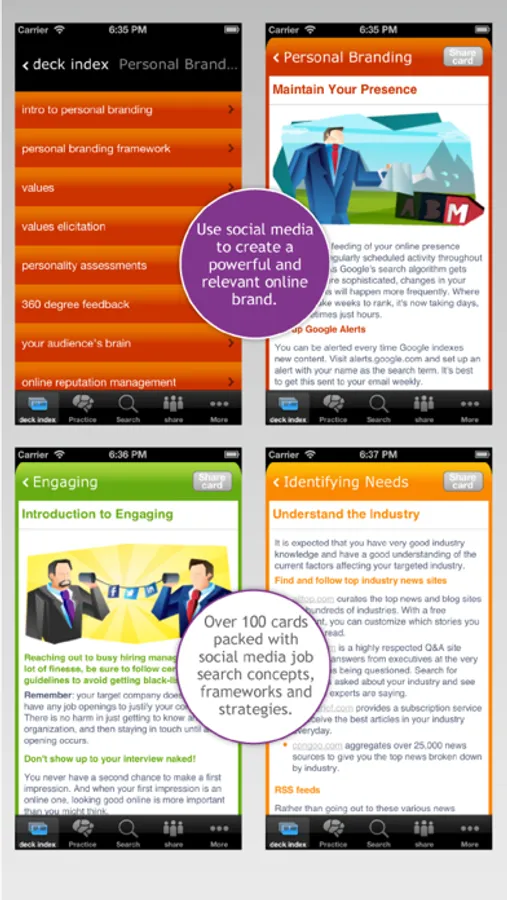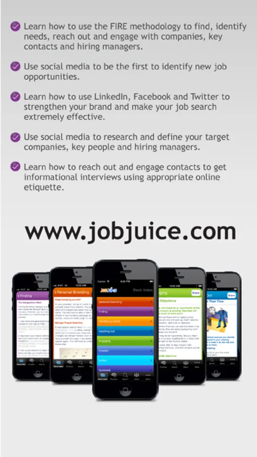 This App has all you need, at your fingertips! The App includes over 100 cards that use cross-referencing to reinforce the links between Personal Branding, the FIRE job search methodology and the key social media tools you will need in your job search.