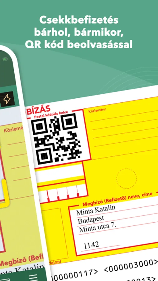 Befizetheti QR-kóddal ellátott postai csekkjeit és iCsekk QR-kóddal ellátott számláit a csekken vagy a számlán található QR-kód beolvasásával.