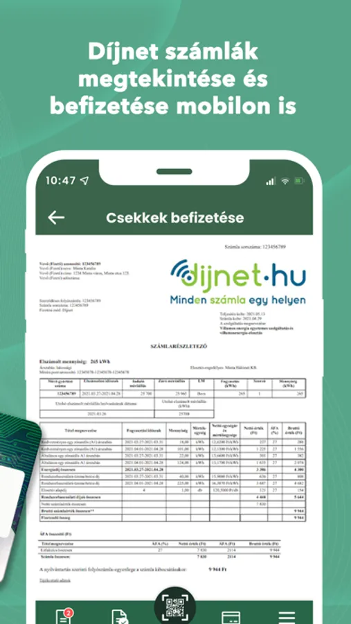 Összekapcsolhatja a Díjnet fiókját az iCsekk-kel, így a Díjnetben bemutatott számlát is megtekintheti és befizetheti.