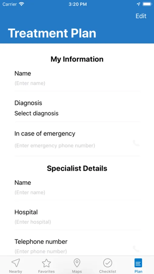 •Enter a treatment center directly into your address book and add it to your ‘Favorites’