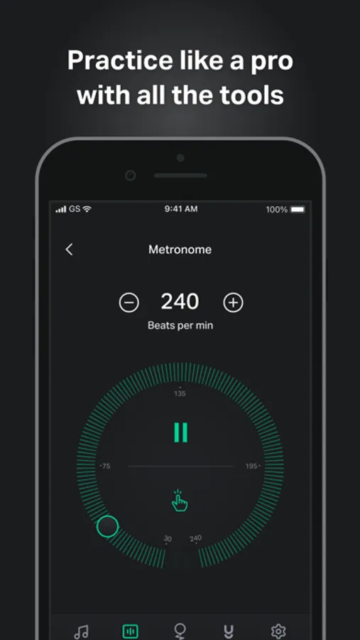• Metronome with tap-for-tempo and multiple time signatures