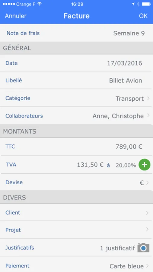 - Associate each expense with categories, co-workers, projects and customers