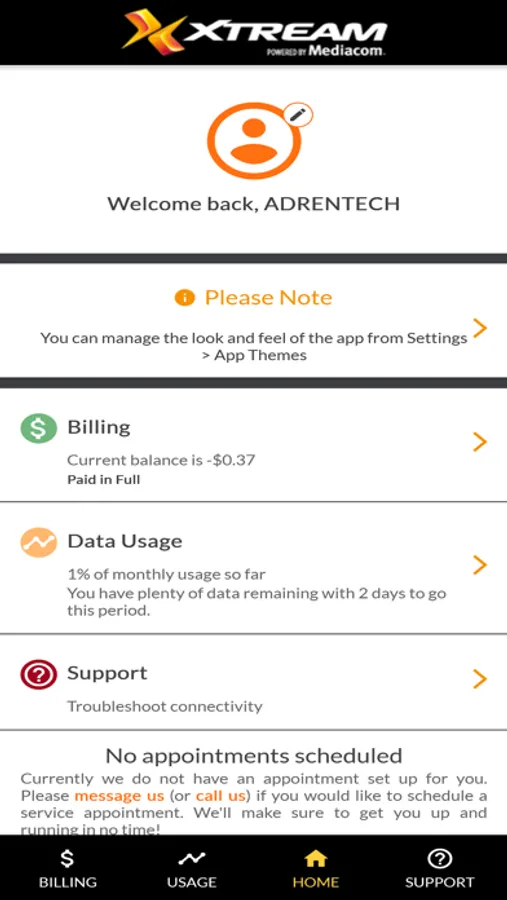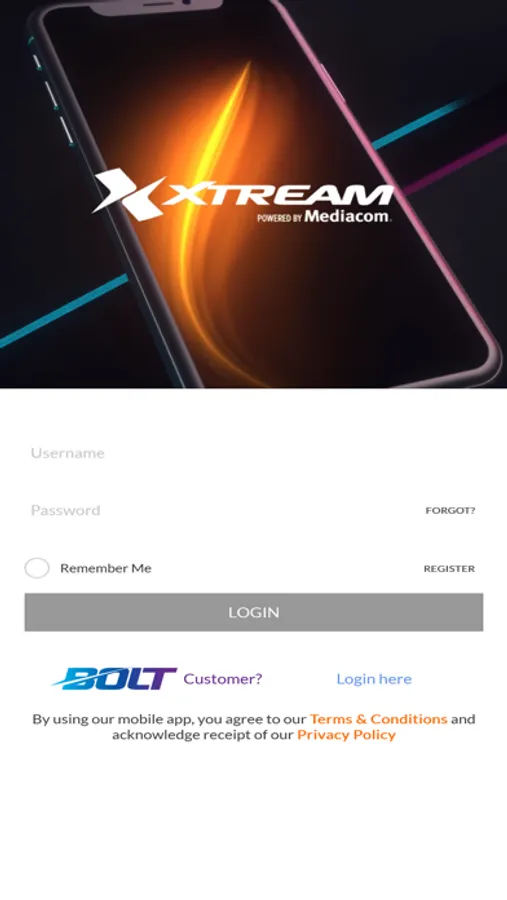 Note: You must have an active Mediacom account to register for and use the MediacomConnect MobileCare app.