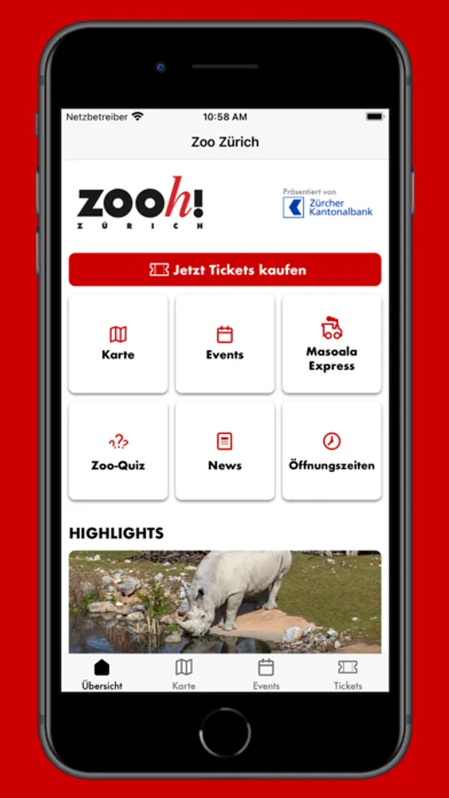 Everything important at Zoo Zurich in your pocket: buy a zoo ticket and scan it at the entrance directly from the Zoo app. The app shows you which animals are at home where, when there are animal presentations and feedings and where restaurants, playgrounds and toilets are located. You can find information about every animal in the zoo and create a list of your favourite animals. The Zoo Quiz sends you on a scavenger hunt, letting you get to know Zoo Zurich's animals and conservation projects better.
