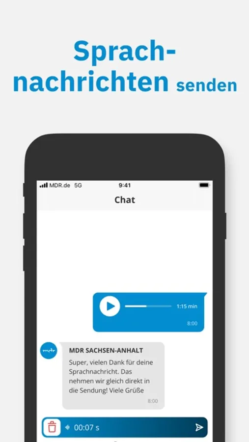 Per Chat-Funktion sind Sie ab sofort direkt mit uns in Verbindung. Neuigkeiten, Termine, Radioaktionen. Mit der MDR Sachsen-Anhalt App wissen Sie immer, was in Sachsen passiert. Im Livestream oder ganz bequem zum Nachhören oder Nachlesen.