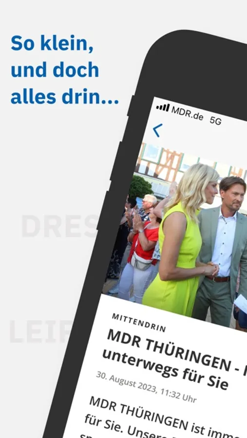 Die MDR THÜRINGEN-App, das ist unabhängiger Qualitätsjournalismus des gemeinsamen freien Rundfunks - kostenfrei und ohne Werbung.