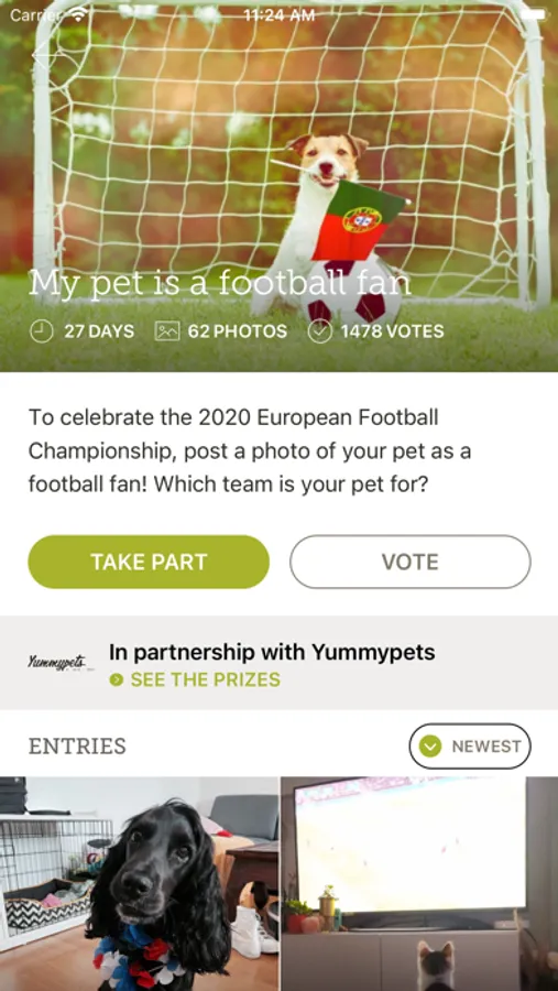 Yummypets runs themed photo contests all year long where the most creative photos are rewarded with prizes. You could make your pet a star of the computer screen!