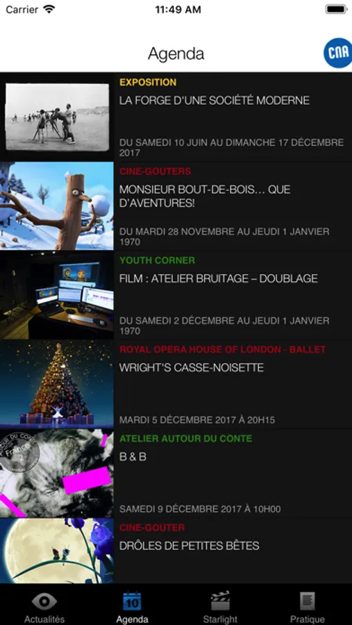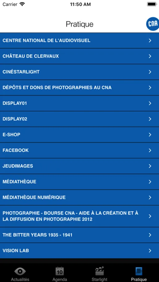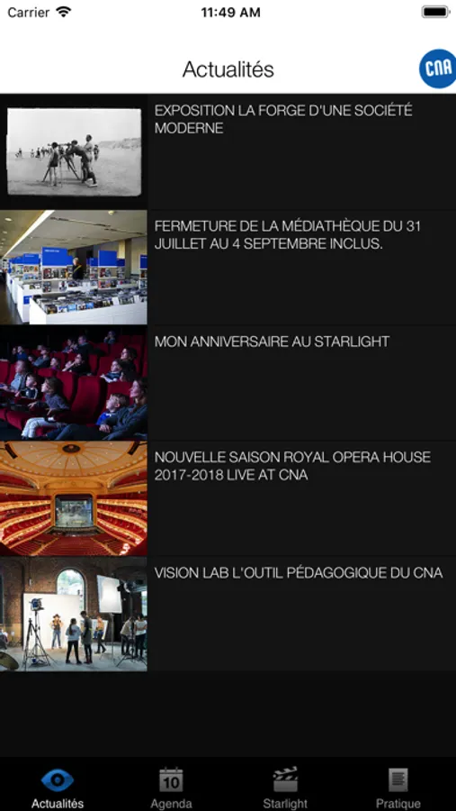 L'application iPhone du CNA - Centre National de l'Audiovisuel du Grand Duché du Luxembourg, dévoile les dernières actualités, l'agenda des nombreuses activités du centre, ainsi que la programmation de son cinéma Starlight et toutes les informations pratiques.