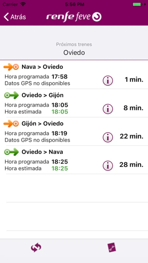 Permite además consultar en tiempo real la llegada de los trenes en los próximos minutos de cualquier estación de la red