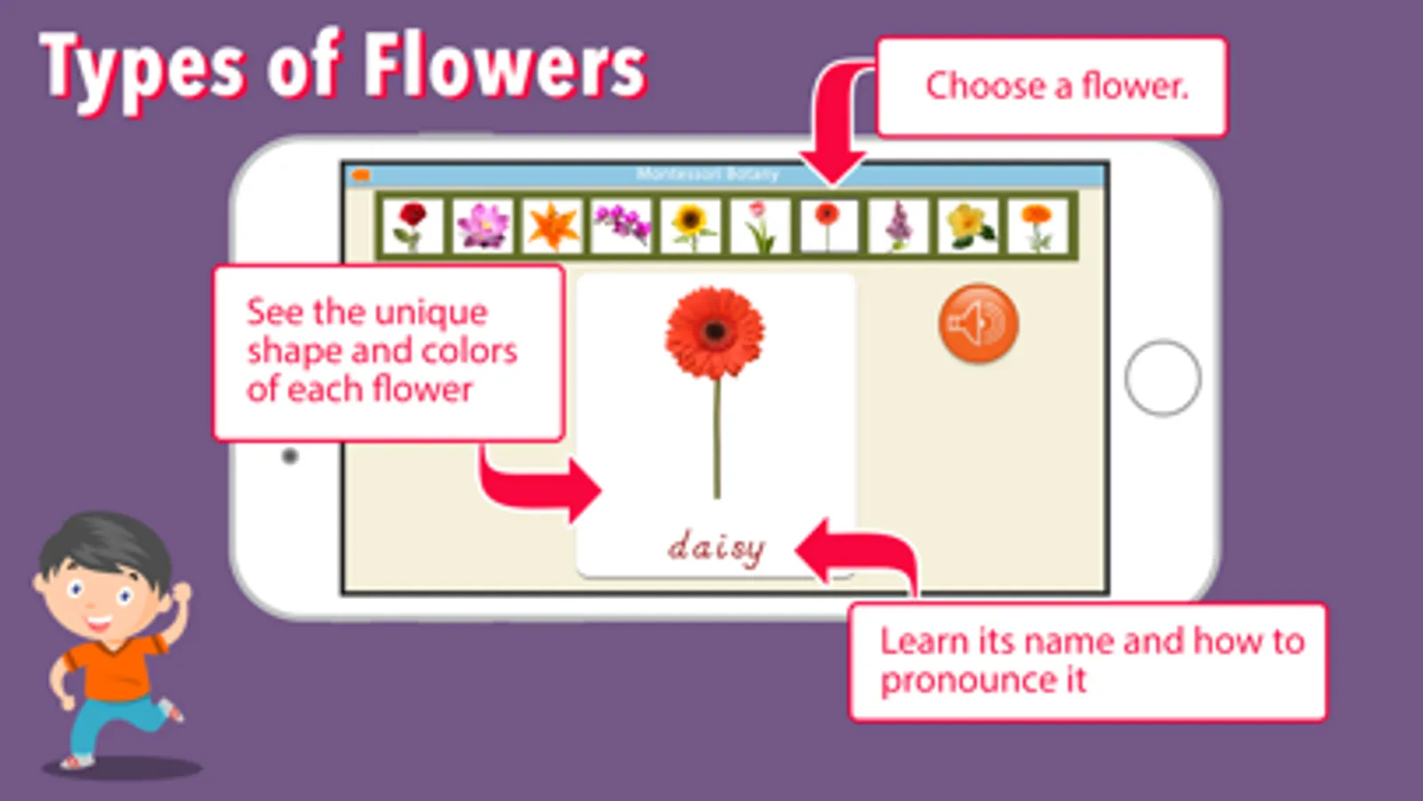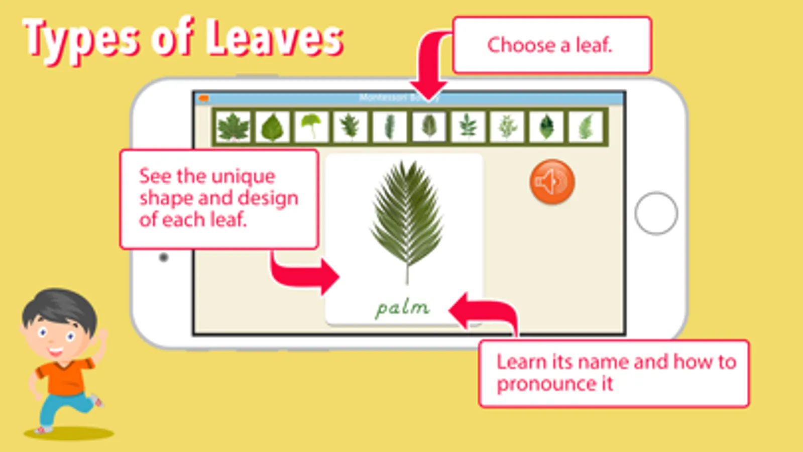 Touch a plant part in the photo-strip to change the featured plant part on the page. Touch the speaker button to hear the correct pronunciation of the plant part and touch the location button to see the plant part highlighted on the diagram! Also, learn the names of several different leaves and flowers.