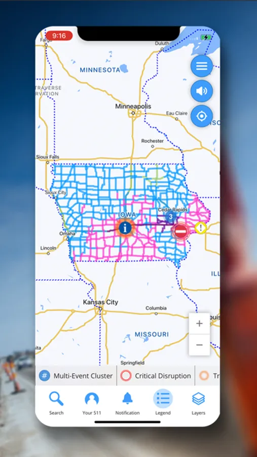 • A zoom-enabled map with tappable traffic event icons and surrounding camera views