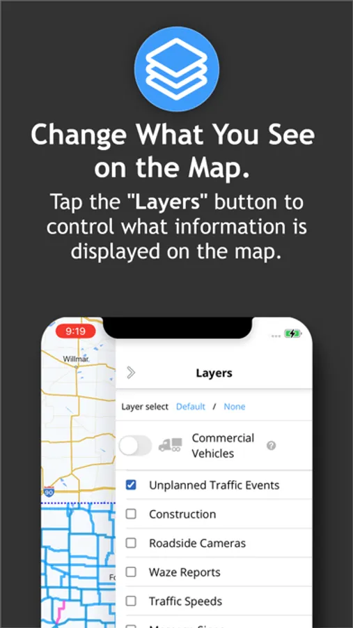The primary responsibility of every driver is the safe operation of their vehicle. While traveling, mobile communication devices should be used only when the motor vehicle is at a complete stop off the traveled portion of the roadway. Do not text and drive (it's against the law) or use this app while driving.