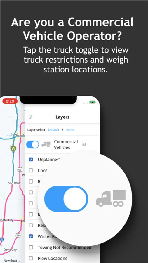 • Trucker Mode with resources specific to commercial vehicle operators