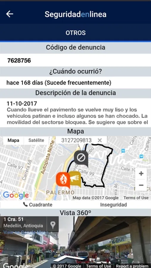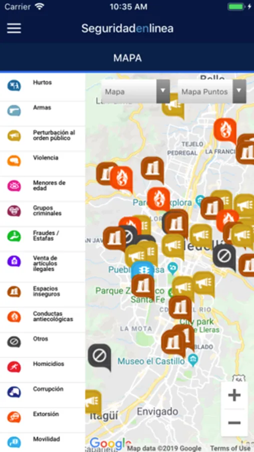 Using seguridadenlinea.com people avoid long lines to report public grievances and provides that information to authorities in order to determine areas where crime is at its highest.