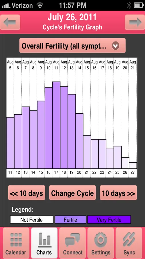* Push notifications to remind you to record symptoms, note ovulation estimate changes, notify you of days of highest fertility, and more.