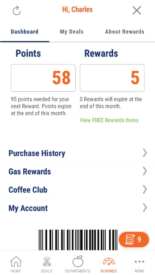 • Easily manage points, rewards, offers & digital coupons