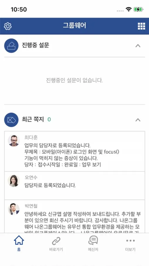 업무와 관련된 각 종 알림 메시지를 받아볼 수 있습니다.
