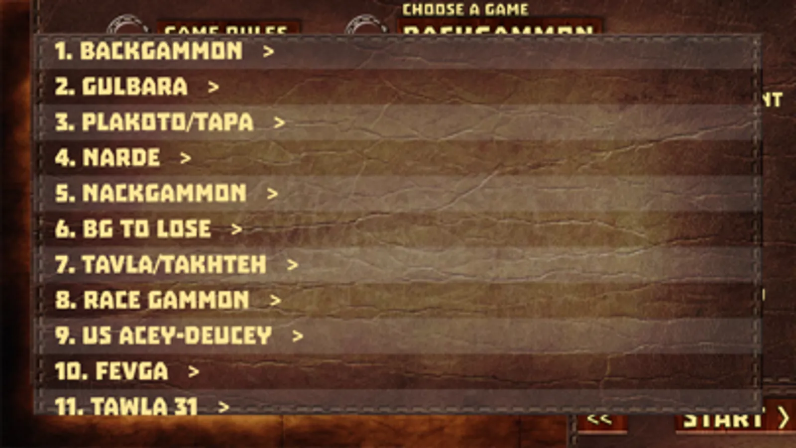 You can play 16 variants of Backgammon game ( Табла, Tabla, Tawla 31 ( طاولة زهر ), Tavla, Длинные нарды, Gamão, Fevga, Moultezim ), Tapa ( Plakoto ), Narde, Nackgammon, Moultezim,Gioul,The pin game,Plakoto express and Gulbara.