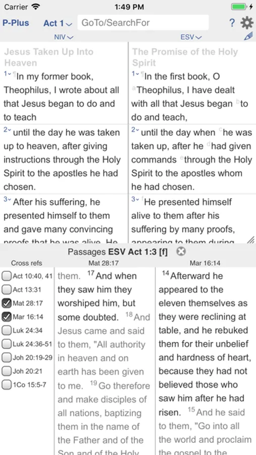 PROTESTANT, CATHOLIC: This app automatically aligns verses—by verse content—and displays corresponding verse numbers when different.