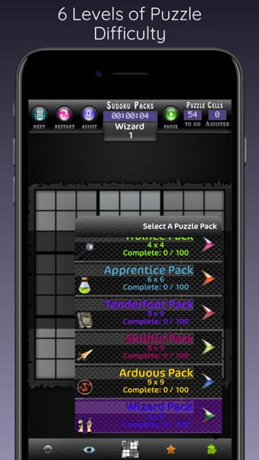 Sudoku Packs features numerous handpicked Sudoku puzzles expanding six progressive difficulty packs. Sudoku Packs is an exhilarating and challenging game for both novice and experienced players. You can play the classic 9 x 9 puzzle grids or venture your way through each puzzle pack. Defeat all the packs to win the game! If your Sudoku addiction cannot be tamed by the traditional book of puzzles, then take it to new heights with Sudoku Packs.
