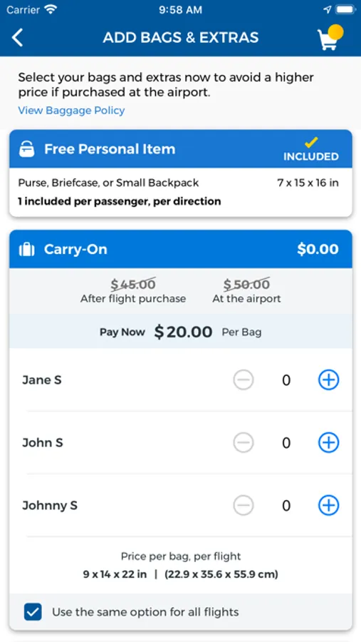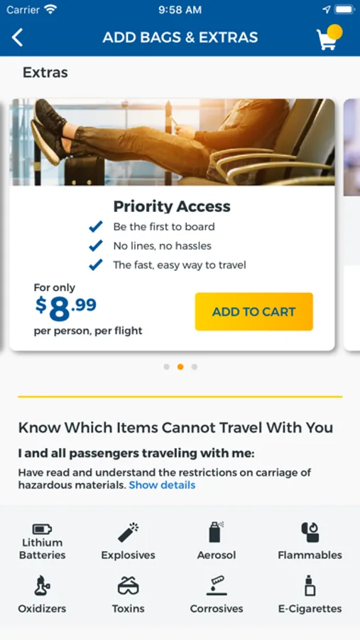 • View and add seats, purchase bags and upgrade to Priority Boarding.