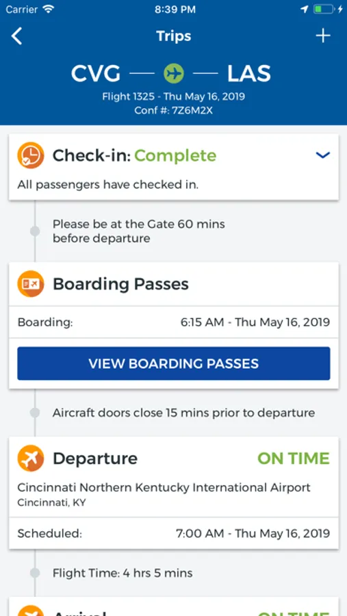• Automatically download trips onto their mobile phone if logged into their My Allegiant account.
