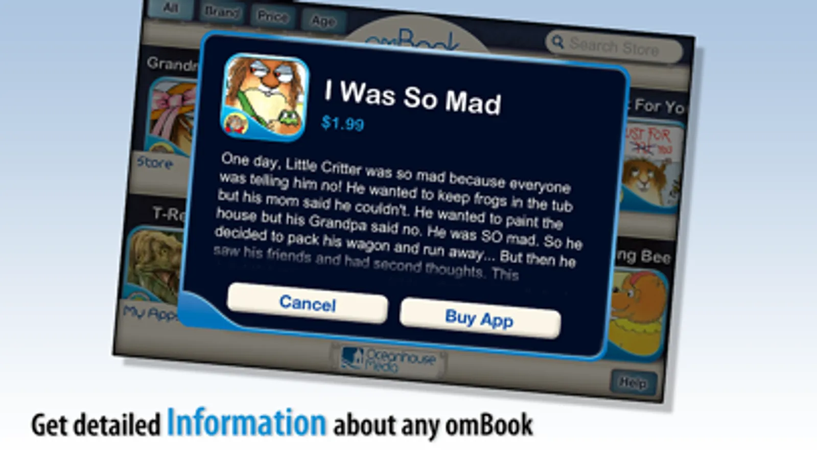 Conveniently browse over 75 children's omBooks in the Store. Sort by brand, price or age, or use the search feature to find exactly what you're looking for. Plus, the Featured section offers up-to-date information on new releases, sales, and omBook suggestions for holidays, special occasions, and more!