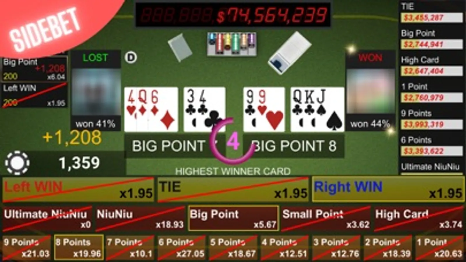 ・BIG POINT pays 2 to 1.