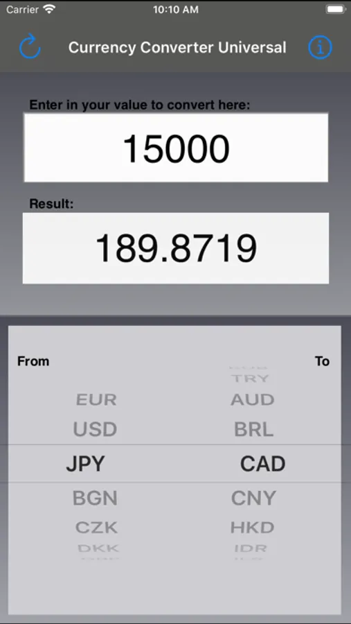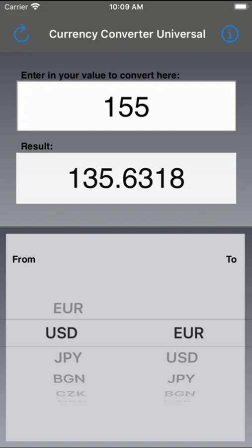 --Use the picker to easy choose which conversion you would like to do. Simple scroll the picker and check different currencies in no time.